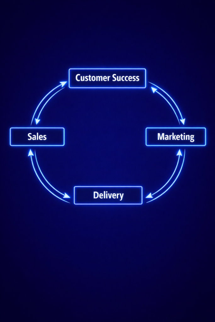 Instead of operating as separate teams with separate priorities, Sales, Marketing, Delivery, and Customer Success begin to work as parts of one connected system.